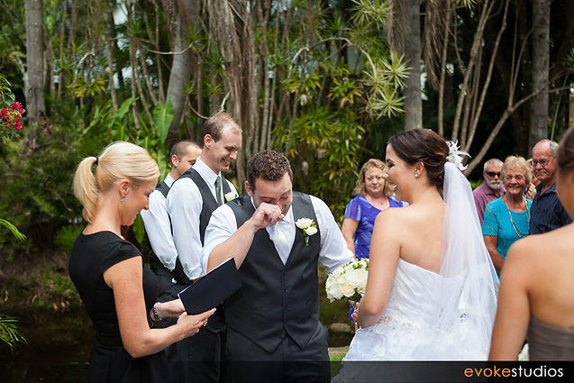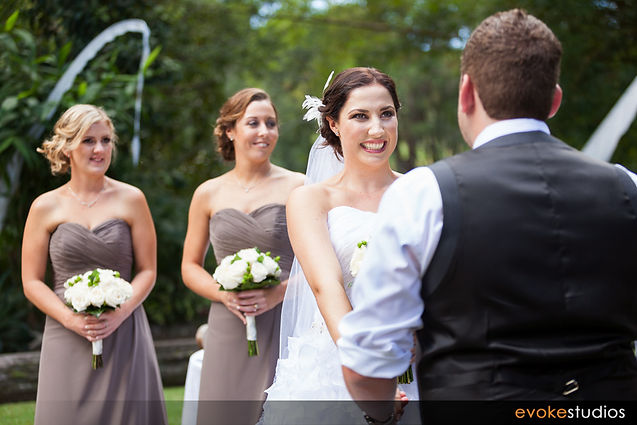 Everyone including the guests were getting ready in Broadbeach, once everyone was ready to go the bus came to pick up the guest and the limo for the Girls. Amore gardens is such a lovely natural wedding venue. "Clarah the celebrant did and amazing job of calming me nerves", said Jodie.
